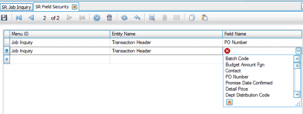 If you set the SR business rule Edit Fields in Job Inquiry to 'Yes', you can then set security to allow certain fields to be edited in the Job Inquiry screen. If you do choose to allow fields to be edited in the Job Inquiry screen, use the Update button on the Job Inquiry screen to allow the edit.