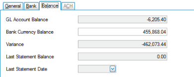 - Enter the Bank Currency Balance. If you use multicurrency, enter this balance in terms of the currency that you selected for this bank account on the Bank tab.