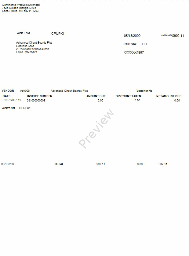 | Output | Output Payment Vouchers as PDF, HTML, MHT, PNG, or RTF files. |