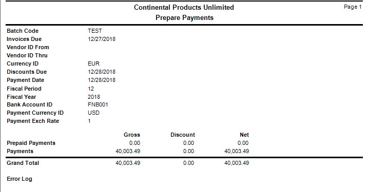 | OK | Begin preparing the payments. When processing is complete, a confirmation box appears. Then the Prepare Payments Report appears. |