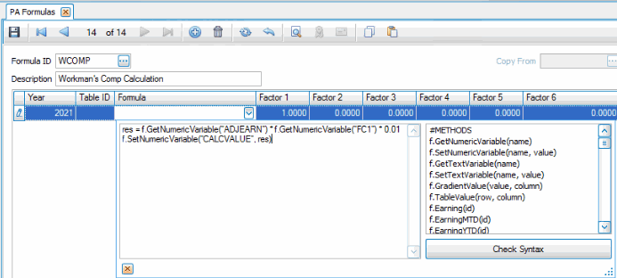) to add a new formula for the current payroll year. - Enter '1.0000' into Factor 1 and skip the remaining Factors.