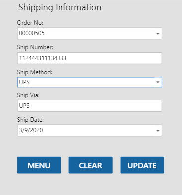 When finished updating shipping information, select Menu to return to the Pick/Pack/Ship menu.