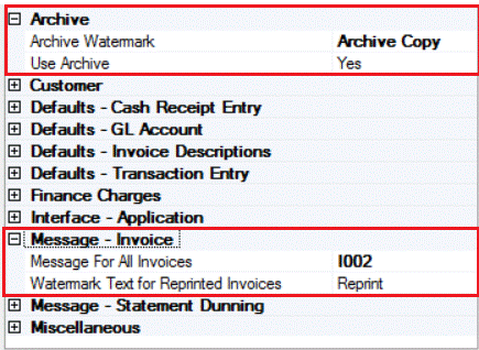 If the document was printed online or using batching with the new document archiving feature enabled, the Business Rule Archive Watermark text will print. If the document was printed before build 16316, or if the Use Archive option is set to No, the Watermark Text for Reprinted Orders/Invoices will print.
