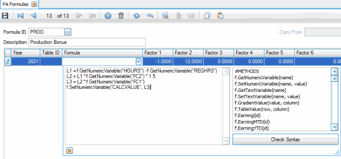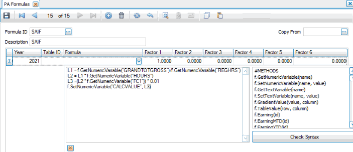 - If you are going to be using variable amounts that could change for each employee, use the factor fields and use the (“FCx”) function (x being the value 1 to 6 corresponding to the factor fields).