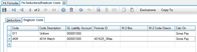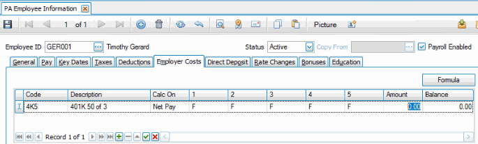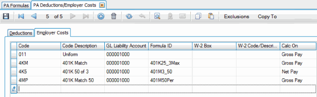 Open the Formulas function from the PA Setup and Maintenance menu to enter the formula for this employer cost.
