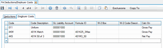 - Because this is an employer cost, select the Employer Costs tab, click New to add a new record.