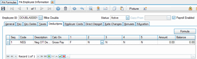 Open the Formulas function from the PA Setup and Maintenance menu to enter the formula for this deduction.