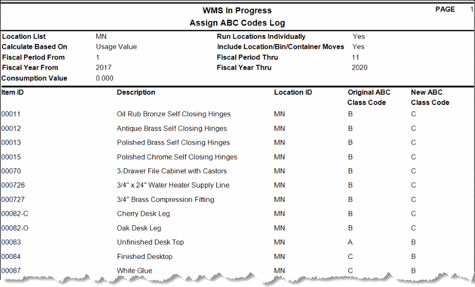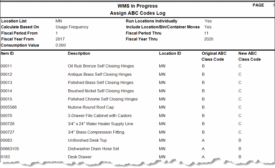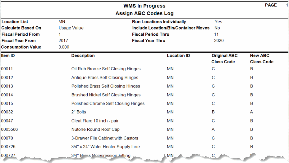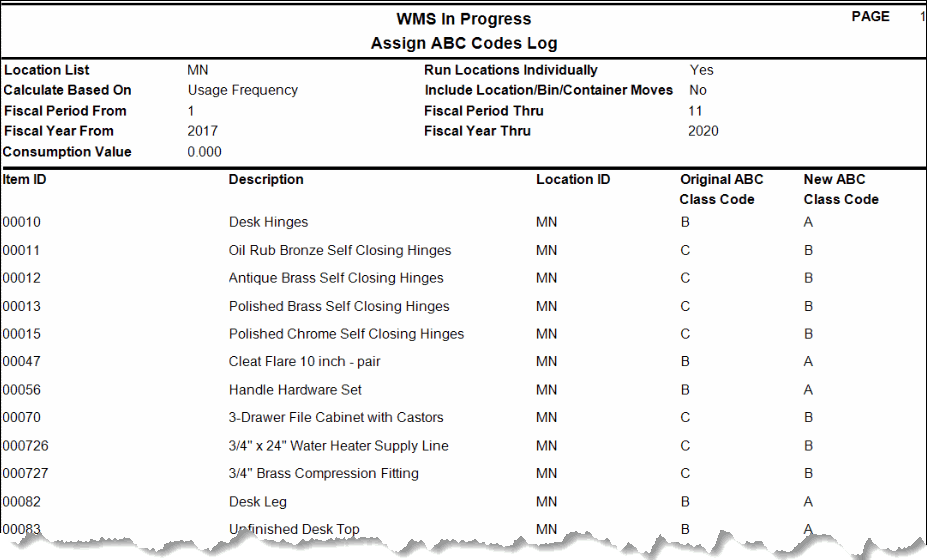 However, the items assigned to each code may be different than those assigned to a code calculated by usage value. The Assign ABC Codes log shows the changes.