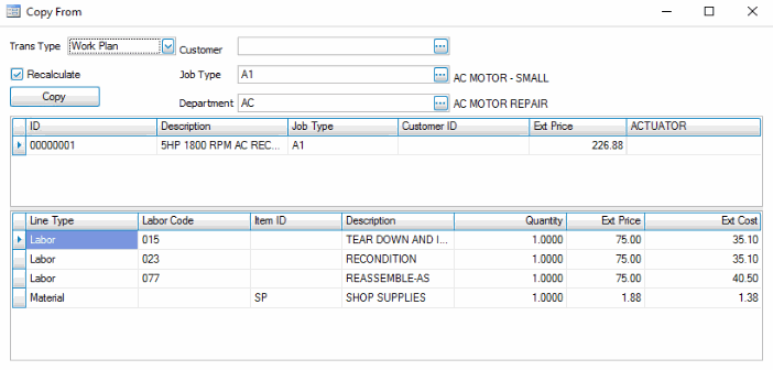 - Click on the Copy button to copy the Estimate/Detail lines from the selected quote, work plan, or job.