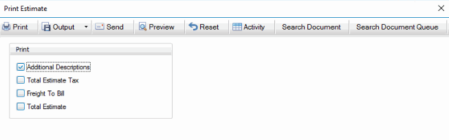 - Mark the Additional Descriptions check box to include additional descriptions on the estimate/quote.