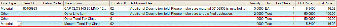 Note: The Total Tax Class records are not editable and are automatically updated when Material, Labor, and Other record values are changed.