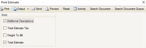 When you are ready to print an estimate, after selecting Print | Estimate, the following additional printing options are available: