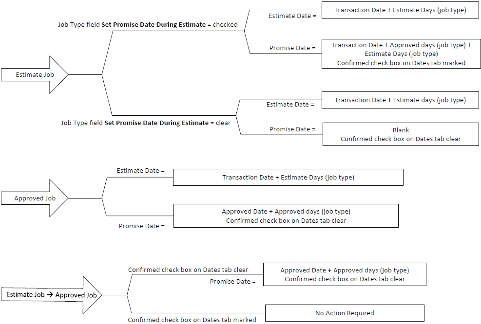| Approve | Change the transaction type to Approved Job. This will also update the Estimate Approved field on the Dates tab. The Approve button is only enabled if the current transaction type is Estimate Job. See Approve for more information. |