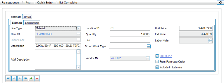 - If the current line item was added to the job from a purchase order, you can mark the Include in Estimate check box to include the estimate cost and price in the Totals tab estimate summary fields, and print the line on the estimate. Clear the check box to omit the cost and price from the Totals tab, as well as omit the line from the estimate.