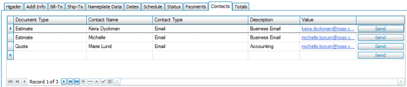 - The contact name from the Customer file will display in the Contact field. You can change this name, if necessary.