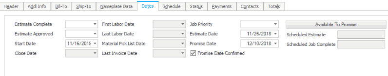 Note: If you change the job type, you can have the system recalculate the Estimate date and the confirmed Promise date. If you do so, you will have to reconfirm the promise date.