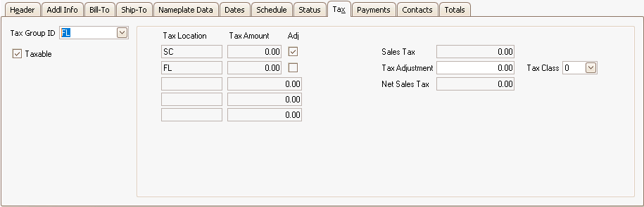 Note: You can use the Column Chooser to add the read-only Tax Class field to the grid to provide tax information. Tax is calculated using the customer's Tax Group ID or the Bill-To or Ship-To Tax Group ID. The calculation then uses the Line Type tax class, which is derived as follows: