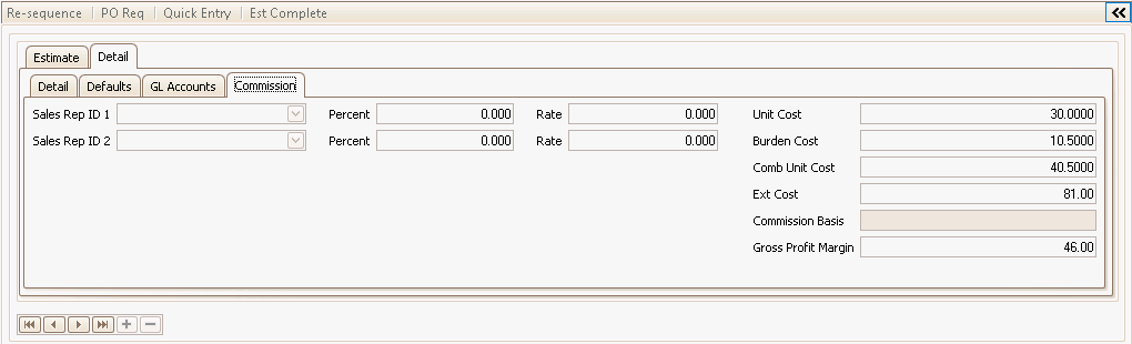 You cannot add any lines to this tab. Use the Estimates tab or the Edit Billings function to add or edit any lines that appear on the Detail tab.