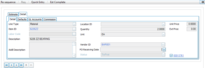 - If the line type is Material, Freight and Charge an Item ID will appear in the associated field.