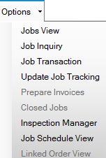 On the toolbar, the Options button drop-down list allows you to open the listed functions, which include select interactive views as well as transactional screens.